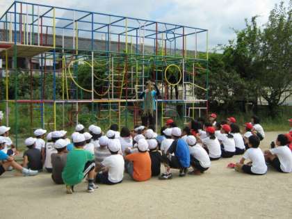 今日はビオトープの田んぼの稲刈りをしました。
