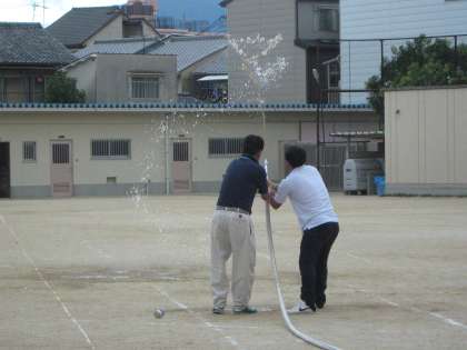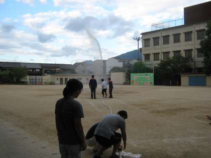 運動場へ散水