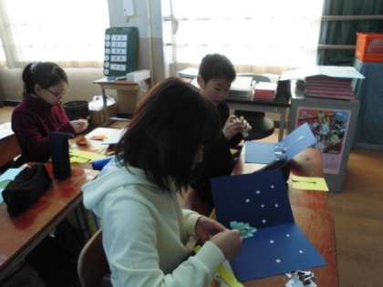 飛び出す仕組みを使ってカードを作っています。