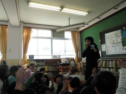 古い汽車にいろいろな動物が乗っていって,お話が進んでいきました。