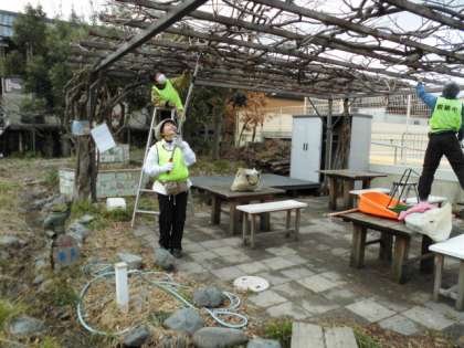 藤の剪定をしてくださっています。