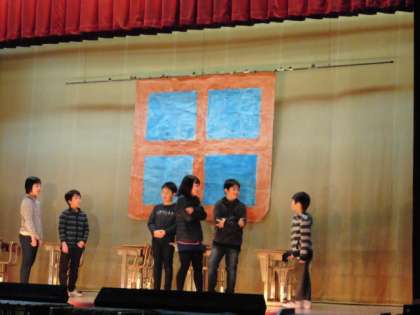 寿限無が生まれたところから,成長して4年生として小学校で過ごしているところを劇にしました。