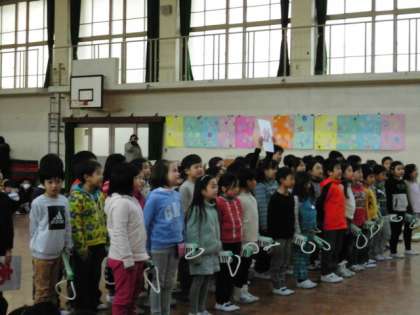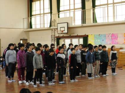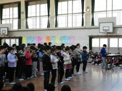 6年生を送る会でした。1年生から5年生までが、6年生のために、心あたたまる発表をしました。子どもたちのやさしさで体育館がいっぱいになりました。
