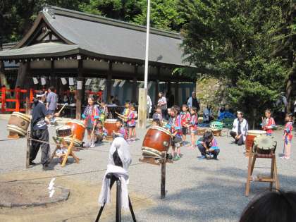 吉田神社で剣鉾部と和太鼓部の発表がありました。好天に恵まれ暑いくらいの日でした。多くの地域の皆さん・保護者の皆さんの前でし発表をしました。剣鉾部・和太鼓部とも新年度が始まってあまり練習する時間がなかったのですが,しっかり発表できました。その中でも,3年生は初めての発表で緊張したと思います。次の発表に向けて,これからもがんばって練習をしましょう。