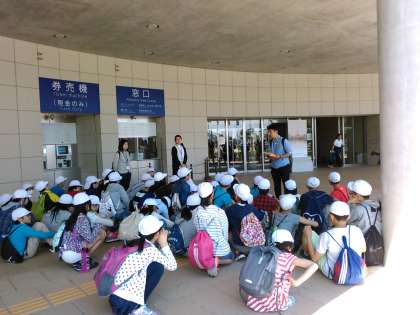 大塚国際美術館に到着しました。陶板の名画がたくさん展示してあります。まずは、玄関で説明を聞き、長いエスカレーターで入口まで上がります。玄関は地下5階、入口が地下3階なのだそうです。そして、最初に聖堂の中にミケランジェロの迫力満点の絵を鑑賞しました。