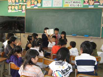 子どもたちが読んでいた「ジャックと豆の木」では,豆の木を上っていくと,おふろでいつも遊んで体をよく洗わないジャックは,大男に「ヒトのにおいがするぞ。」という声を聞いて,木をおりてしまいました。そこでジャックは,「ふろで体をよく洗い,ふようなにおいをふりはらうと」ヒトのにおいがぜんぜんしなくなって木のてっぺんまで登り,金のはっぱをとって億万長者になったというお話でした。オリジナルの作品とは一味ちがうおもしろさのある本のようです。
