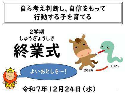 2025年、保護者の皆様・地域の皆様には様々な教育活動にご理解・ご協力、ありがとうございました。