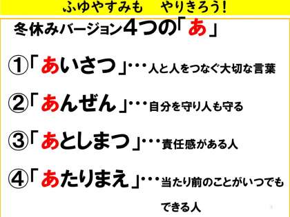 明日から子どもたちが楽しみにしている冬休みに入ります。
