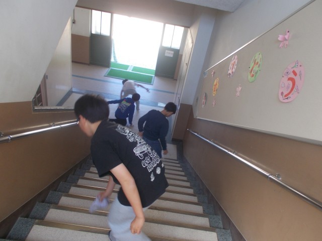 また、片付けの時に水がこぼれて汚れてしまった階段や廊下も自分たちで拭いてきれいに「あとしまつ」できていました。