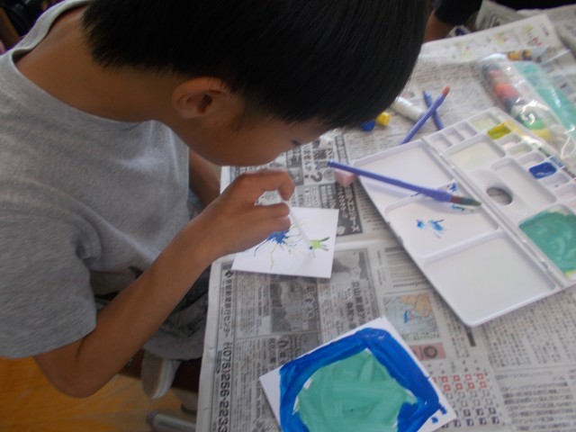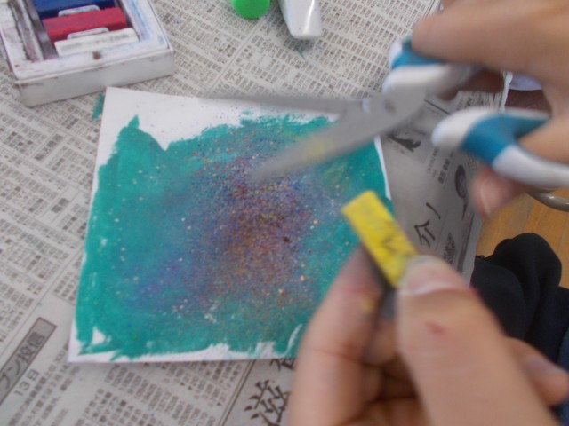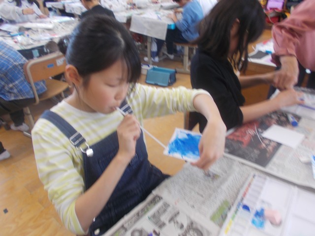 コンテを削ったり、ストローで吹いたり、スポンジでスタンピングしたり、絵の具で色を重ねたりと、表現方法に積極的に挑戦する姿が見られました。また、友達の作品に刺激を受けながら、自分なりの表現を広げていく姿も印象的でした。