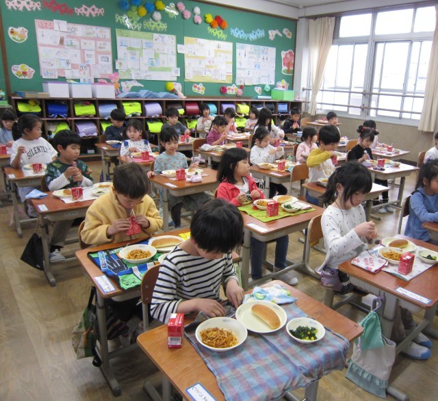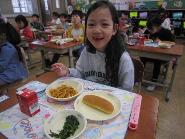 1年生は初めての学校給食。
