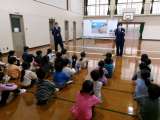 川端警察署の方に来ていただいて,交通安全教室を行いました。 道路の歩き方や横断歩...