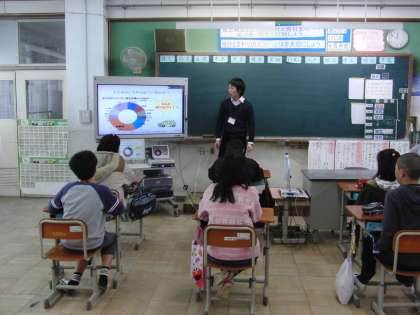 NPO法人気候ネットワークの方々にお世話になり,6年児童が,エコライフについて出前講座を受けました。子供版環境家計簿を活用した参加型の環境学習が「こどもエコライフチャレンジ」です。今回は,その事前学習として,地球温暖化やエコライフについてクイズなどを通して学習していきました。冬休みの間,環境家計簿を使いながらエコライフに挑戦していきます。