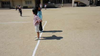 写真は、最初の時間にかげふみ遊びをしているところです。