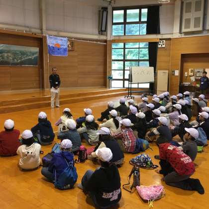 入所式です。校歌をきれいな歌声でプレイボール内に響かせていました。