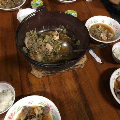 みさきの家で初めての夕食です。すき焼き風煮,美味しそうにできました。