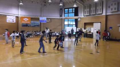 プレイホールでフリスビーターゲット,バドミントン,輪投げをした後,ドッジボールをして楽しみました。フェアプレーで対戦できていました。