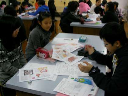 資料や模型を見ながら,自分で分かりやすくまとめ,みえるもんで発表。