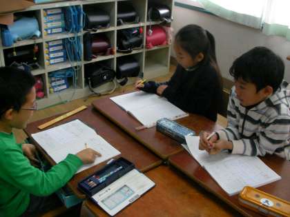 ノートに自分の考えをしっかり書き,友達と意見を交流。