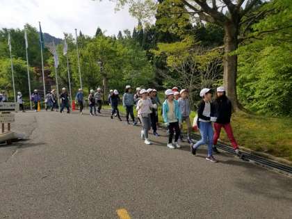 今から天狗杉に向けて、出発です!準備運動もバッチリです!