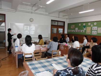 本日PTA主催の「第1回家庭教育学級」が開催されました。内容は学校栄養教諭の河合先生から「小学校給食」についての話を聞く、1年生の給食の時間の様子を参観する、子ども達が食べている給食を実際に食べるというものでした。