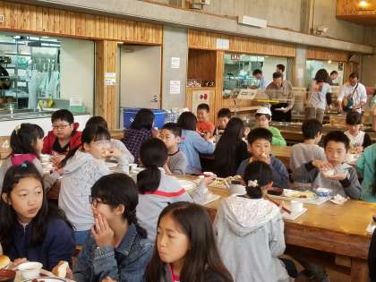 4日目の朝ごはんです。食堂の使い方もバッチリです。たくさん食べて、お腹いっぱいになりました。