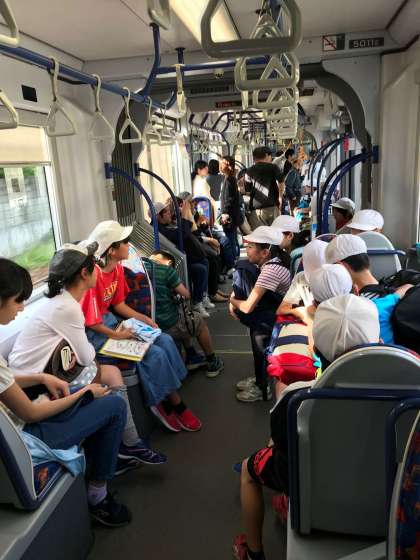 50分の電車の旅です。他府県の修学旅行生も乗っています。