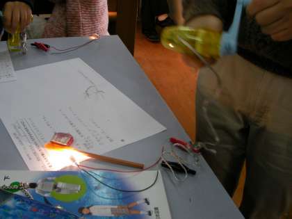 最後に,たくわえた電気で車を走らせました。