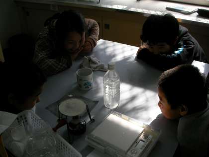 すると,ホウ酸がどんどん出てくるのが観察できました。