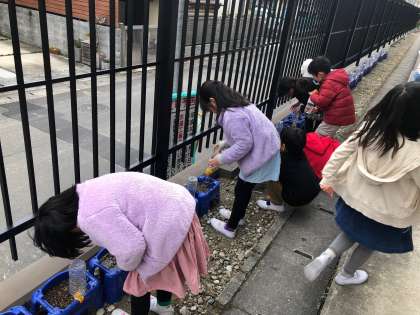 1年 生活科 チューリップの水やり