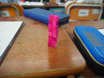 1cmの直方体がいくつ分かで2つの直方体の大きさを比べて,「体積」の概念を理解しました。