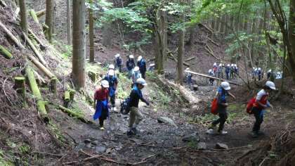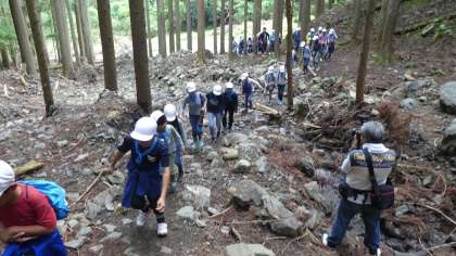 最初は少し急な坂道が続きます。みんな1列になって辛抱強く登っていきます。