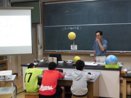 月の位置により地球からの見え方がどんな風になっているのか,理科室で実際に考えてみました。ある時は新月,またある時は三日月など月と地球の位置関係によって見え方が違うことが実験を通してよく分かりました。何気なく目にする月にはこんな秘密があったんだ。