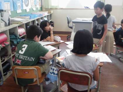 グループの中では,聞き手と話し手にわかれて取り組んでいました。