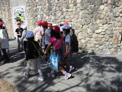 2年生のお兄さんやお姉さんにやさしくしてもらってとても嬉しそうな1年生でした。