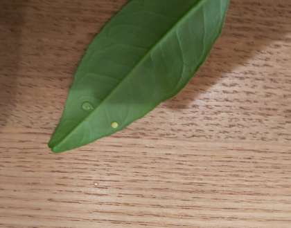 あげはちょうがとんでいたので,近くの葉っぱのうらを見ると小さなたまごが!