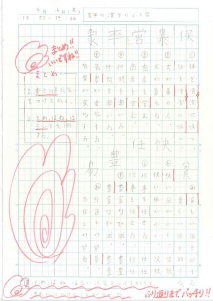 自主勉強をするだけでなく,やった後に「まとめ」や「ふり返り」を考えていたところがすばらしいなと思いました。