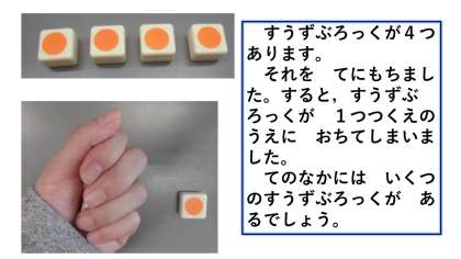 てのなかには いくつの すうずぶろっくが あるでしょう。