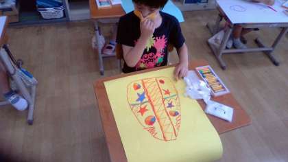 図画工作科では「ひみつのたまご」を作っています。
