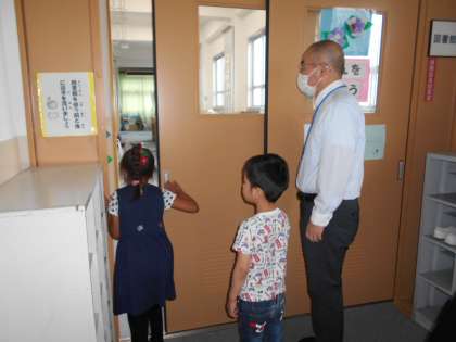 以前,学校探検をしたのですが,もう一度,学校のどこにどんな部屋があるのかを確認しながら学校図書館へ行きました。