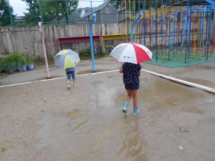 傘をさして歩いていると,傘に雨が当たってパラパラと音がしていました。
