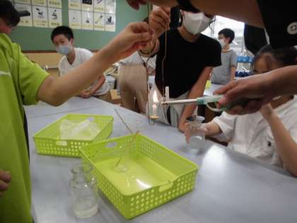 理科では,ものの燃え方について実験しています。