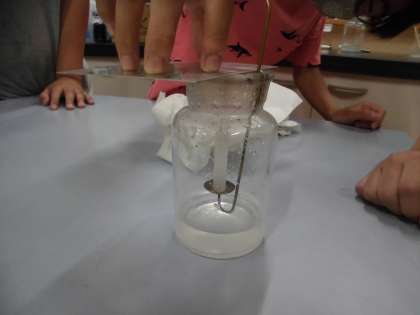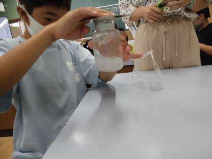 石灰水を使い,色の変化を確かめました。