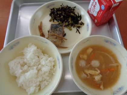 今日は1年3組で「給食について」の食に関する指導をしました。給食はいろいろな人が関わってできていること,また,北白川小学校の給食は約400人分を3人の給食調理員さんで作っていることを知り,とても驚いた様子でした。