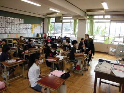 今日の外国語の学習は,ALTのアナ先生が来てくださいました。