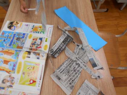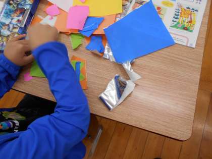 紙を手でやぶいて,そこから思いつくものを作りました。