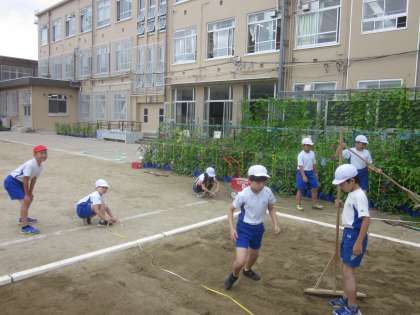 今日は雨が降らなかったので,走りはばとびをしました。