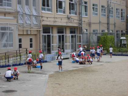 理科の学習では,空気や水は,おしちぢめることができるかどうか,体積の大きさはどうなるかどうか,実験をしています。