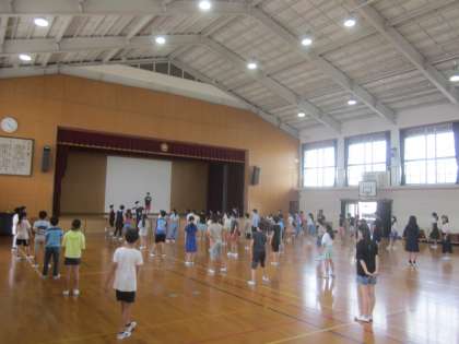 北白川スポーツの日に向けて,スポーツ委員会が準備運動を教えてくれています。