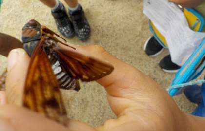 校庭にいる動物を予想し,実際に探しに行きました。5年生が育てている稲の近くにはイナゴが,杉の木にはセミが,グレープフルーツの木にはアゲハチョウが,畑にはバッタやコオロギが,プールにはアメンボが…本当にたくさんの動物を短い時間に見つけていました。